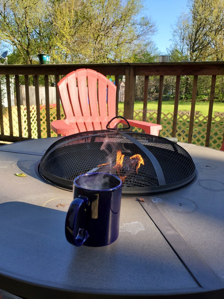 Looks like the fire is dying down, and the dogs have thoroughly investigated and catalogued the overnight critter passings in the yard. I’m going to finish this last hot sip of my coffee and start my day.
